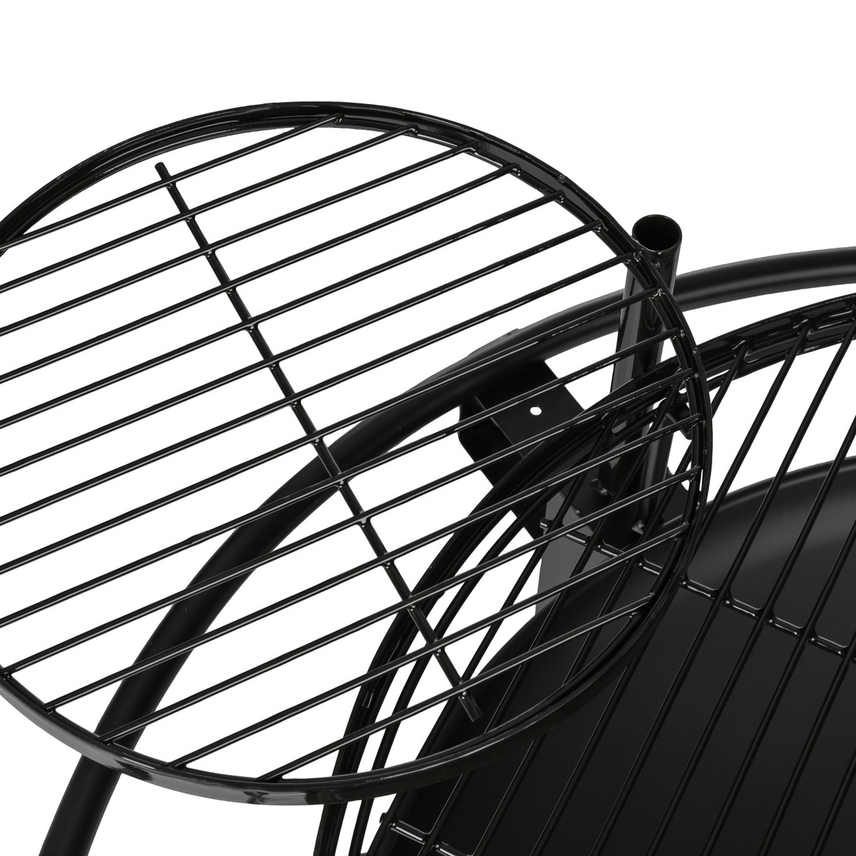 Den solide, men samtidig relativt lette stålkonstruksjonen gjør det mulig å flytte ildstedet uten å demontere det, hvis nødvendig. Ildstedet er omgitt av en metallbue, hvor det er lett å henge grillverktøy og tilbehør eller for eksempel en kurv med krydder. Grill- og oppvarmingsrister i porselensemaljert stål. Produktet er enkelt å montere med hjelp av klare instruksjoner.
