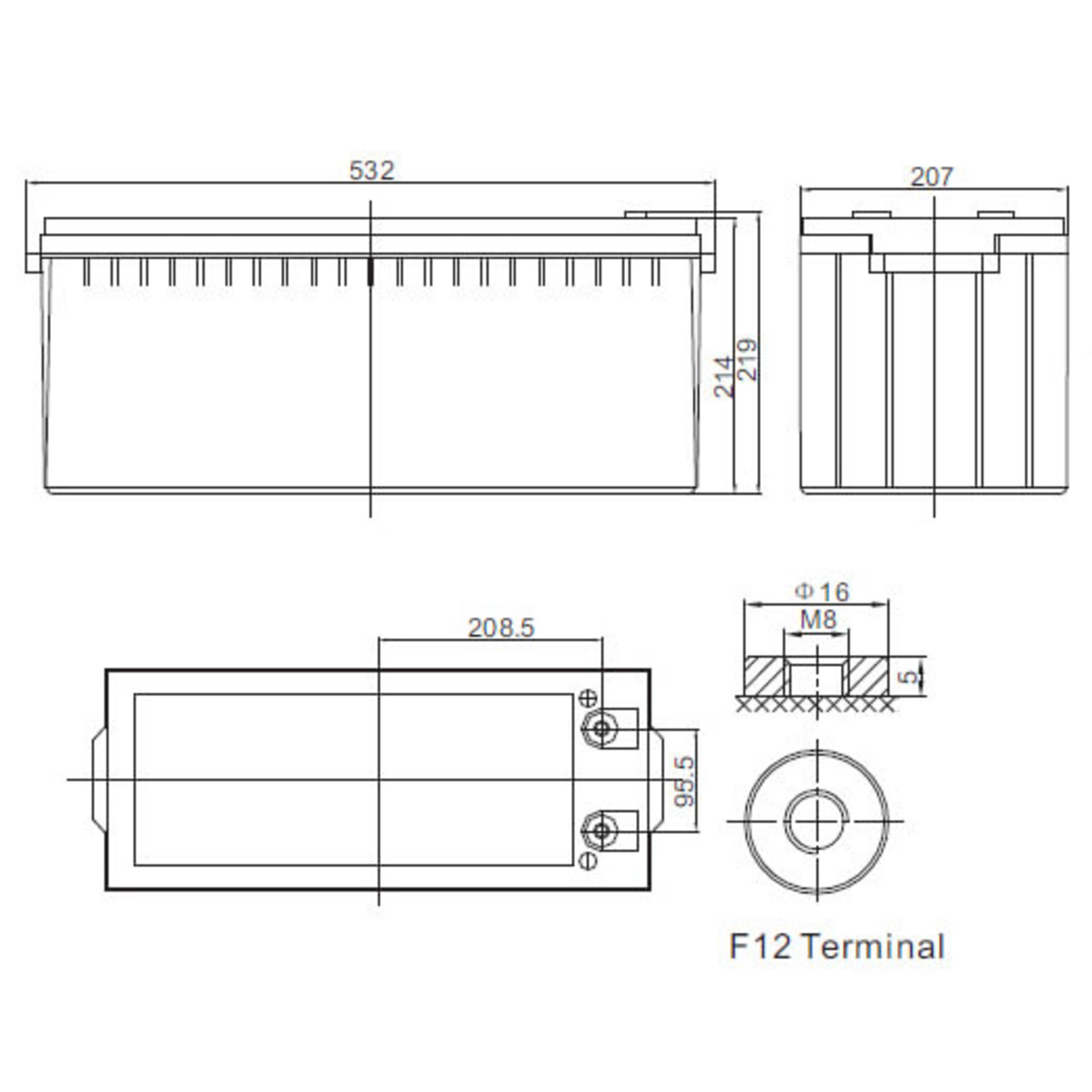 - 12 V / 160 Ah / 20 HR