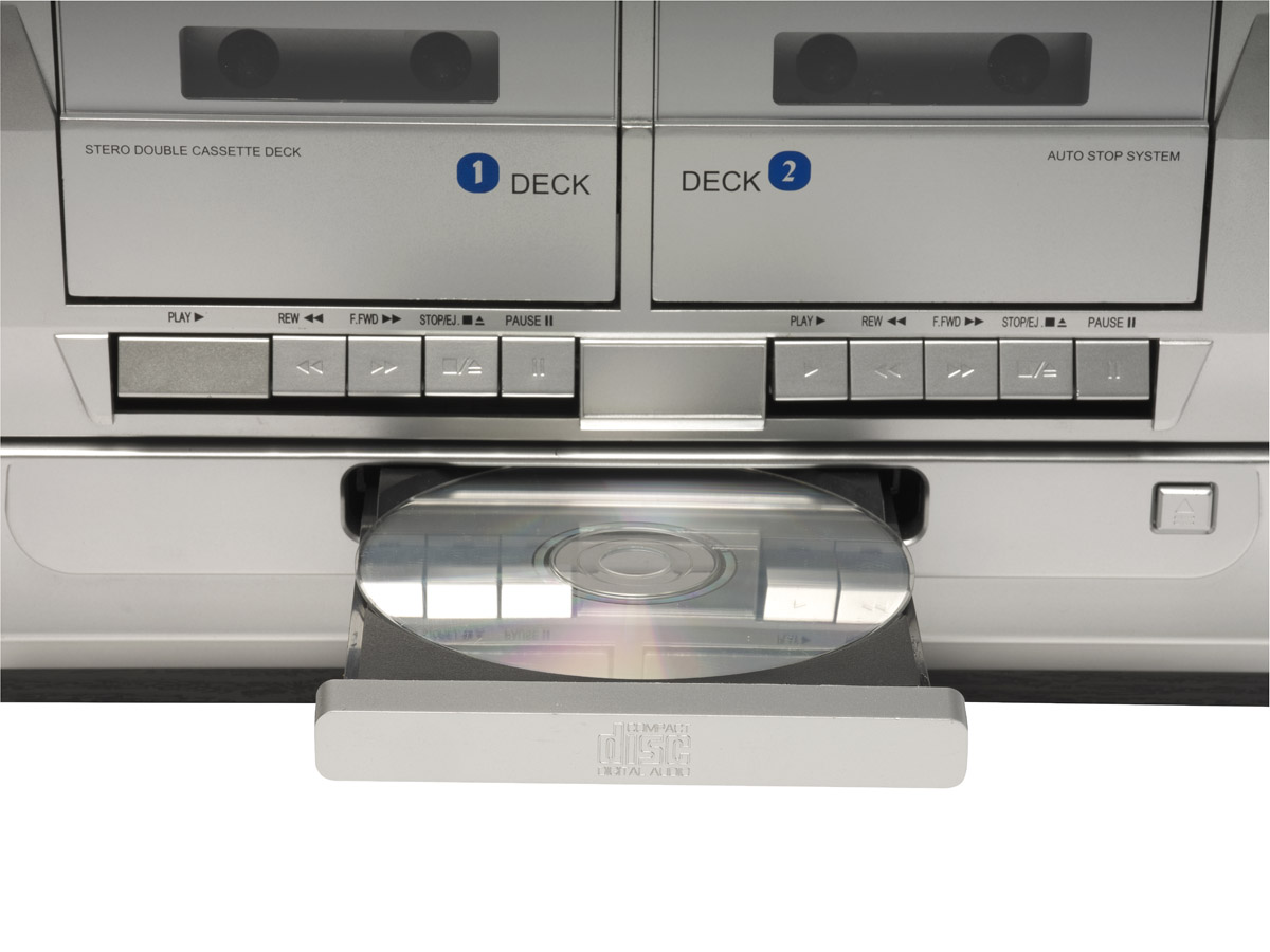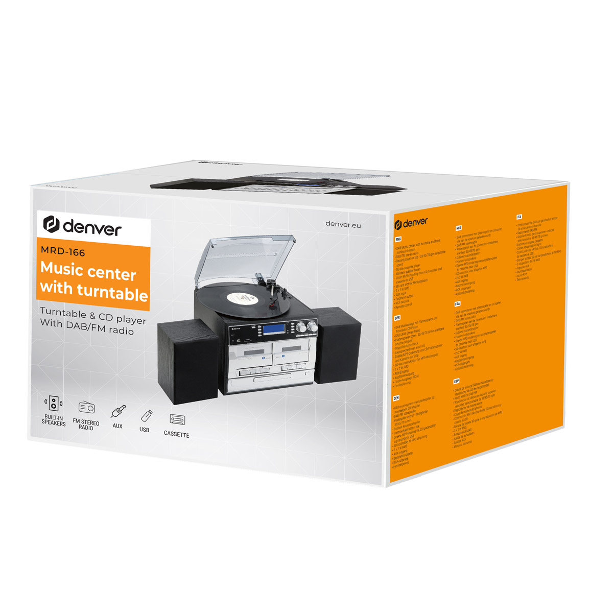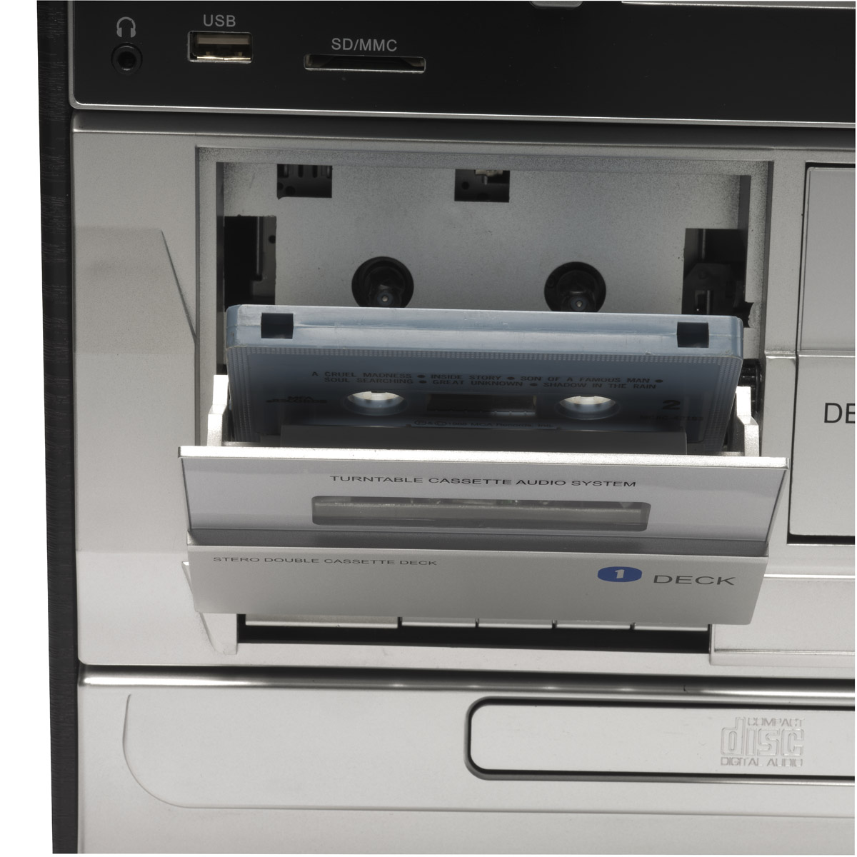 Tekniske spesifikasjoner: LP 33/45/78, DAB+/FM, CD, dual cassette, USB & SD