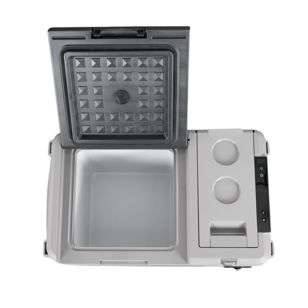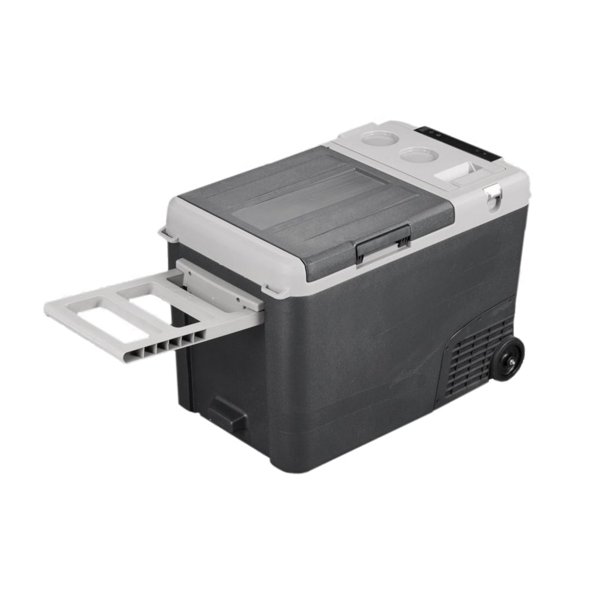 Den kompressor-drevne 35 liters reisekjøle-/fryseboksen passer godt til bruk i 12/24 V kjøretøy. Den tåler vibrasjoner og helninger godt, så den fungerer bra også under mer røffe forhold. Lokket har lås. Veldig effektiv, kjøler ned til -20 °C med svært lavt strømforbruk, uavhengig av utetemperaturen.