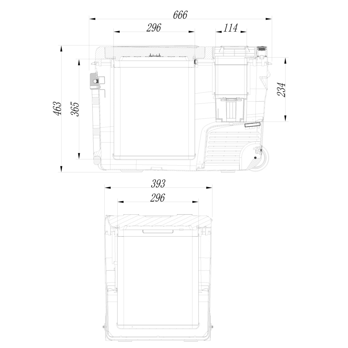 - Utvendige mål (L x B x H): 66,6 x 39,1 x 46,2 cm
