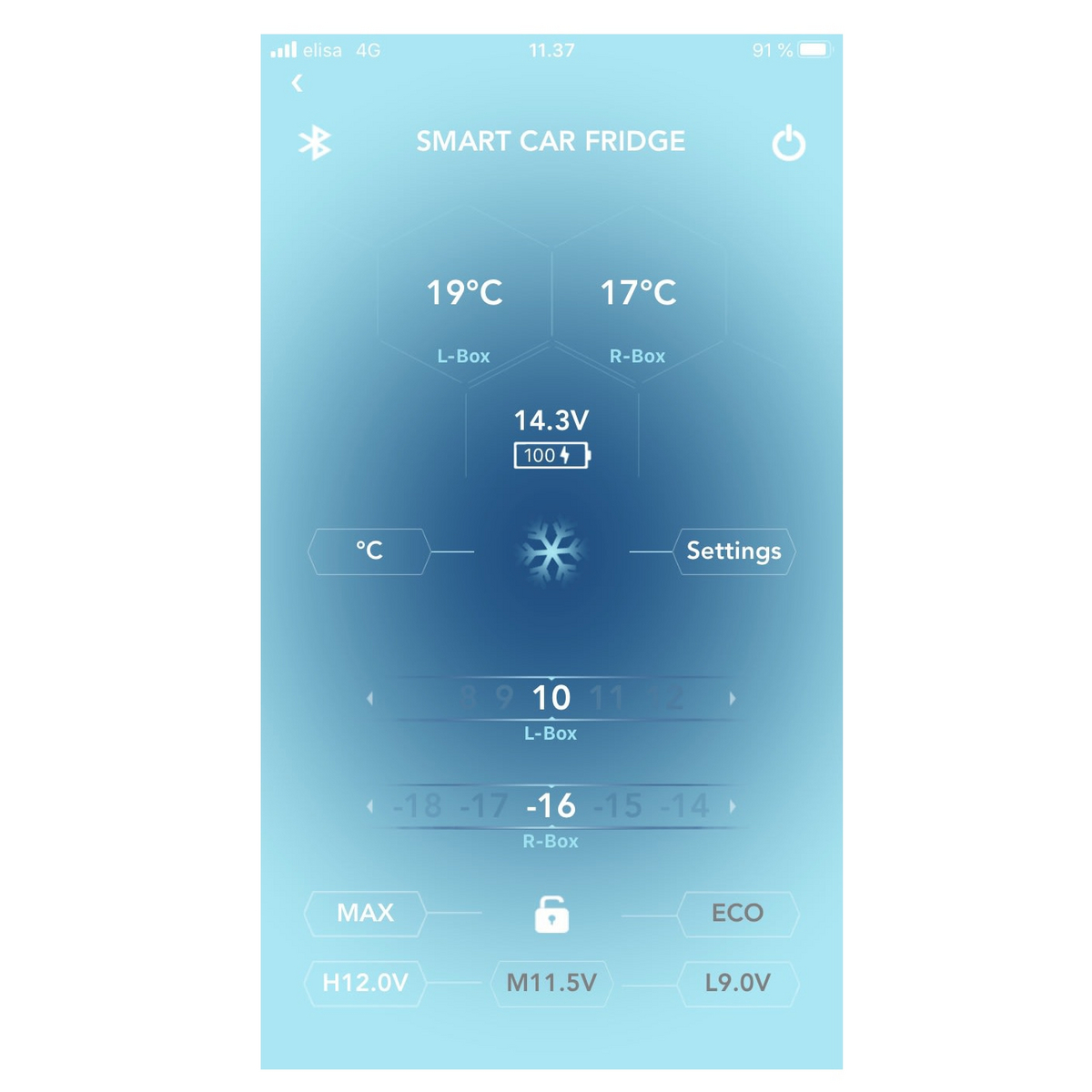 - Enheten er utstyrt med Bluetooth. En gratis nedlastbar, brukervennlig mobilapplikasjon som gjør det mulig å overvåke og fjernstyre kjøleskapets temperaturer med en smarttelefon.