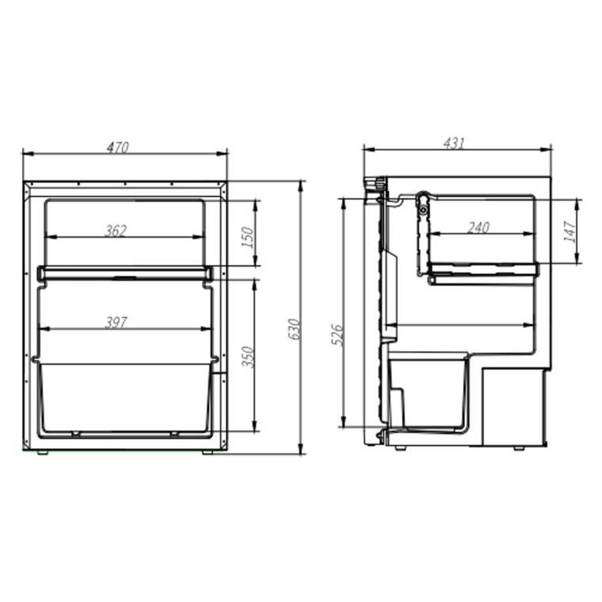 - Dimensjoner (B x D x H): 470 x 430 x 630 mm