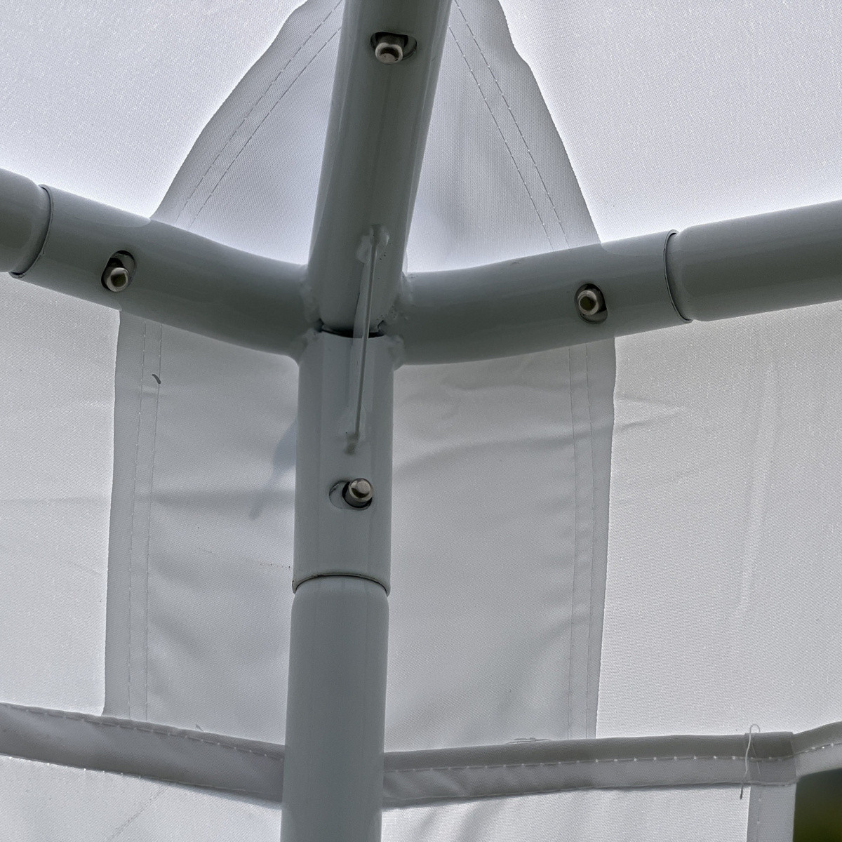 Teltets tak er laget av et sterkt 260 g/m² PVC-belagt polyesterstoff som har utmerkede vannavvisende egenskaper, og stoffets UV-beskyttelse sikrer lang levetid. Takket være materialkvaliteten forblir festen uforstyrret både ved plutselige regnbyger og stekende sol. Du kan danse, nyte måltider og skape minner uten å bekymre deg for været.