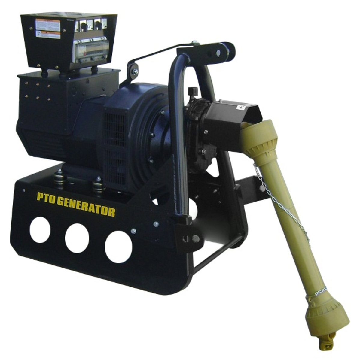 En effektiv nødstrømsenhet montert på traktors bakside som gir både nett- og strømuttak. Mulighet for å sikre strømforsyning ved strømbrudd eller i områder uten elektrisitet, raskt og enkelt. Med denne trefasegeneratoren kan du få strøm hvor enn du kommer til med traktoren. Standard trepunktsfeste. Maksimal effekt opptil 50 kW. Utstyrt med elektronisk AVR-regulator, voltmeter, amperemeter og frekvensmåler. Kardangaksel medfølger alle modeller.