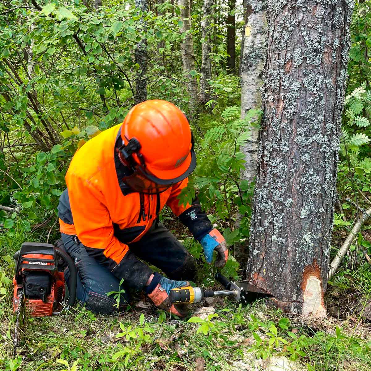 Sikker felling krever stor forsiktighet og presisjon. Glem takrennestenger, gammeldagse gjerdepeler, glatte pigger og lykkebringere. Du kan bruke Jokijärven fellkile på flere måter, enten med en batteridrevet muttertrekker, skralle eller en kraftig batteridrevet maskin. Lett å ta med seg.