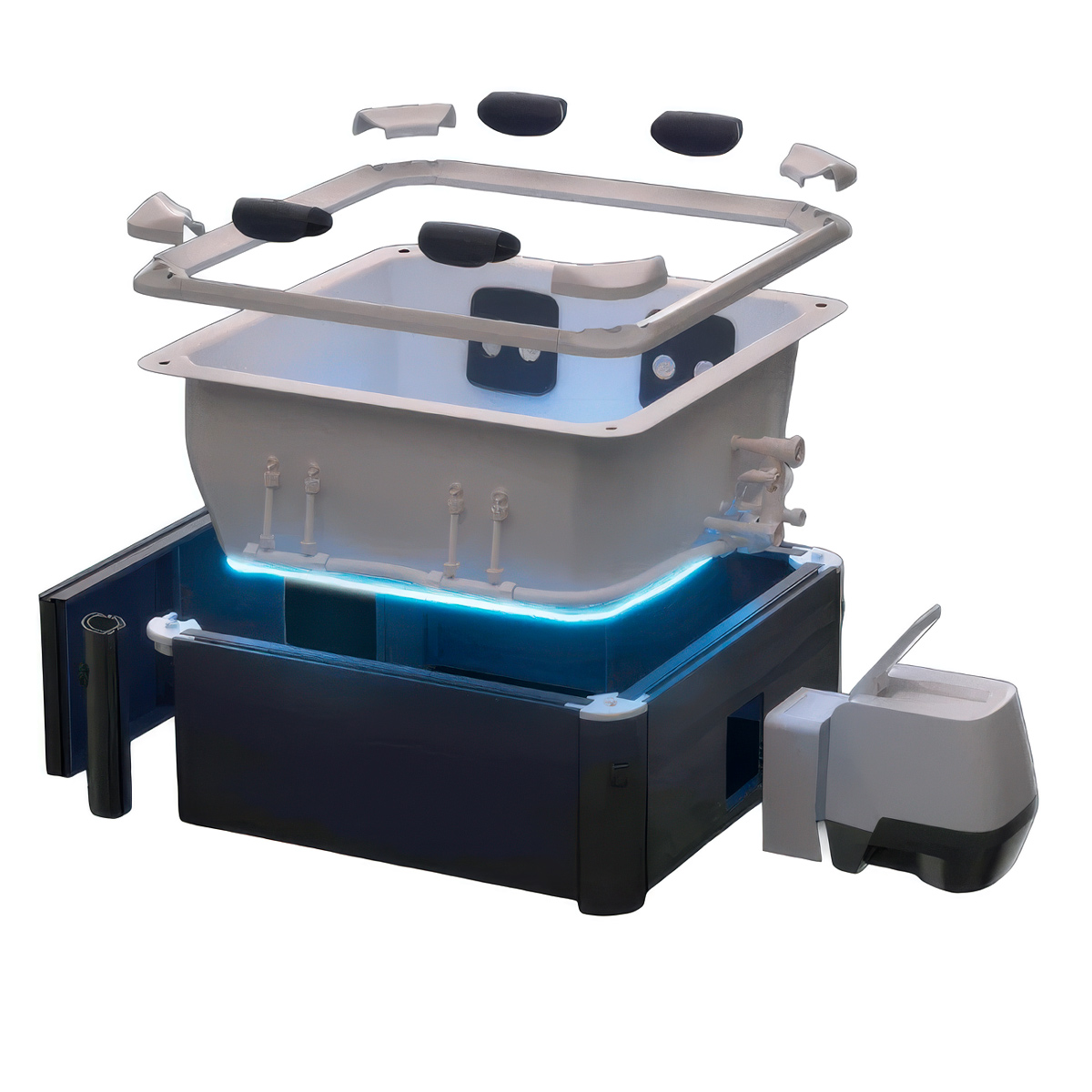 Totalt 140 luftdyser kombinert med justerbare hydromassasje-dyser gir en dypt avslappende badeopplevelse. For koselige kvelder skaper LED-listen langs bunnen et mykt, stemningsfullt lys. Pute til hodet, ryggstøtter og integrerte sitteplasser gir komfort i alle posisjoner.