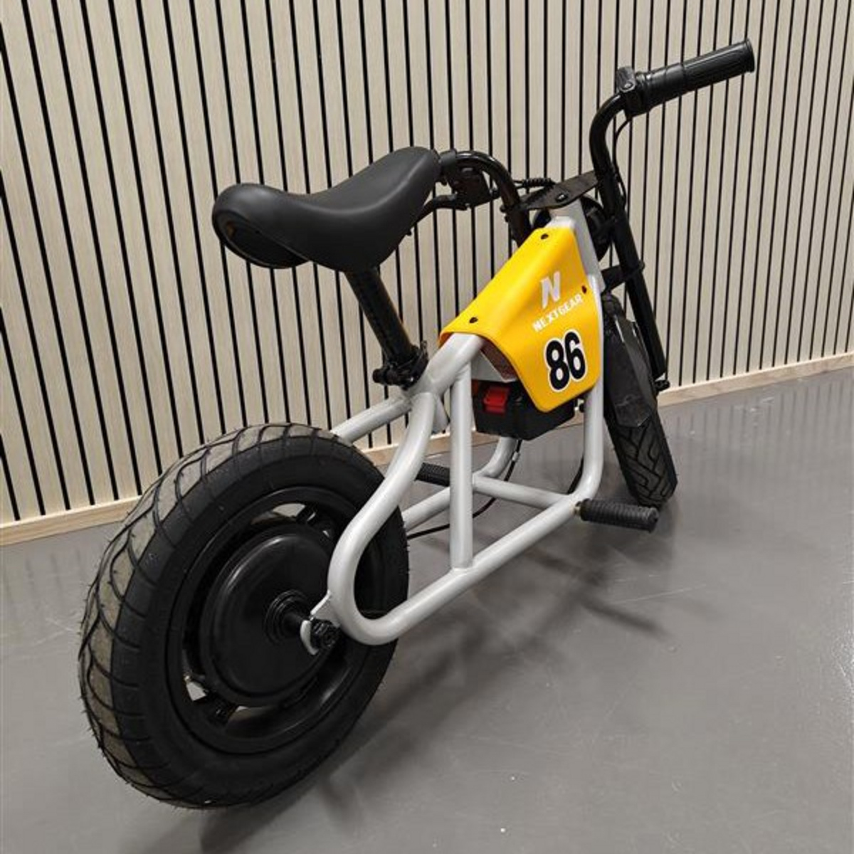 NextGear elsykkel E-Cruiser Mini+ gul er en trygg og stilig "min første motorsykkel" for familiens yngste førere.