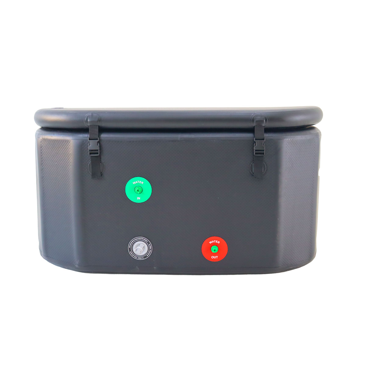 Størrelsen er generøs med sine 137x75x63cm, men den er også lett og bærbar med den medfølgende bærevesken. Det solide innløpet og utløpet kan enkelt pares med kjølere eller filtre, som ytterligere forbedrer din isbadingserfaring.