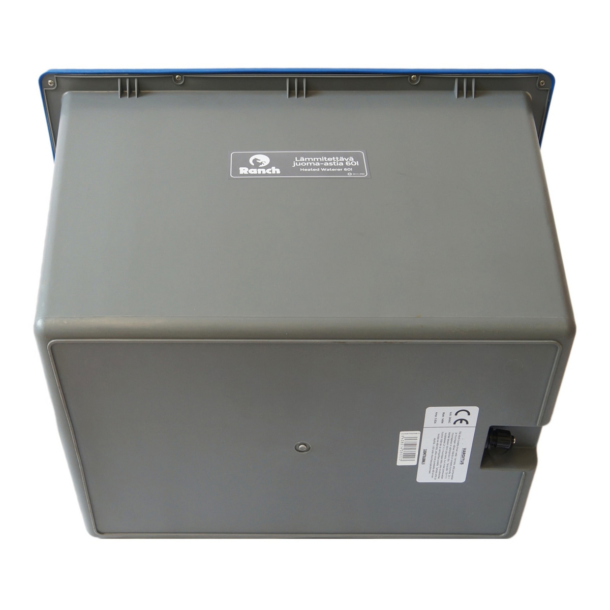 60 L oppvarmet drikkebeholder som kan brukes utendørs eller i uoppvarmede rom i kalde årstider. Laget av plast i næringsmiddelkvalitet som er solid og isolerende. Drikkebeholderen tåler -20 °C under rolige forhold og holder da vanntemperaturen på 10–15 °C. Innebygd termostat som starter når omgivelsestemperaturen er rundt 3 °C. Drikkebeholderen står støtt takket være formen sin.