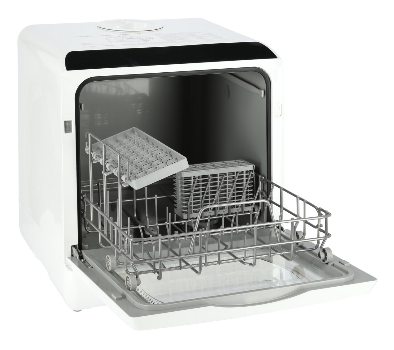 En stille, brukervennlig og kompakt oppvaskmaskin for det lille kjøkkenet, hytta, campingvogn — også der det ikke finnes rennende vann. Kan kobles til vanntilførsel, men fungerer også uten. Alt du trenger er 220 V strøm fra nettet, aggregat eller inverter.