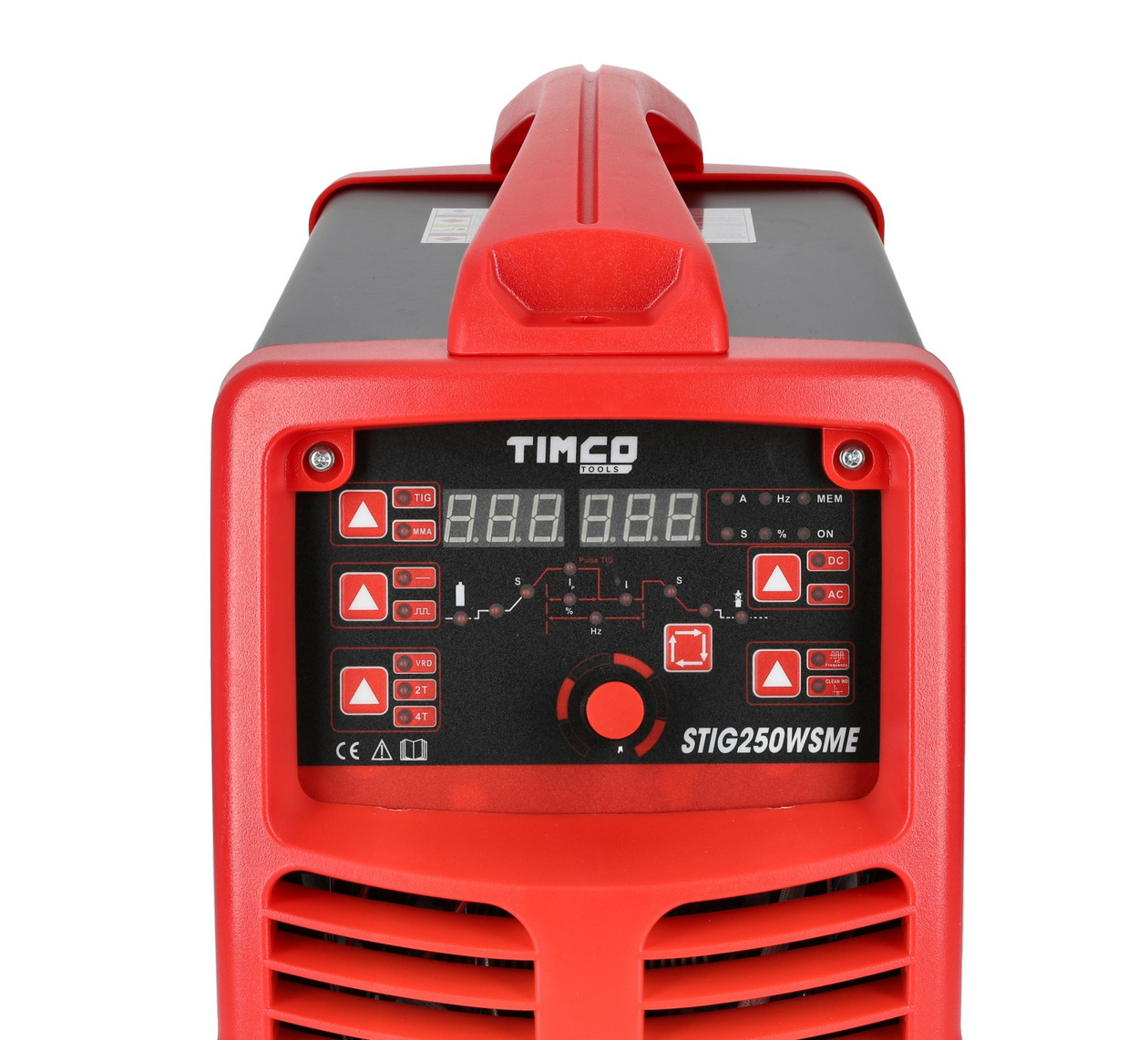 Utstyrt med den nyeste teknologien og en LCD-skjerm, er Timco AC/DC Pulse inverter STIG250WSME en AC/DC pulsinverter som er lett, bærbar og en virkelig kompakt TIG-sveiseapparat. Den egner seg for lett industriproduksjon, vedlikehold og reparasjon, landbruk og bilindustrien. STIG250WSME er designet for TIG-sveising av høy kvalitet. Med dette TIG-sveiseapparatet kan du sveise nesten alle typer metaller, f.eks. stål, rustfritt stål, krom, titanium og aluminium! Når forholdene ikke egner seg for TIG-sveising, kan du alltid bytte til pinnesveiseledningene og utføre arbeidet med pinne (MMA).