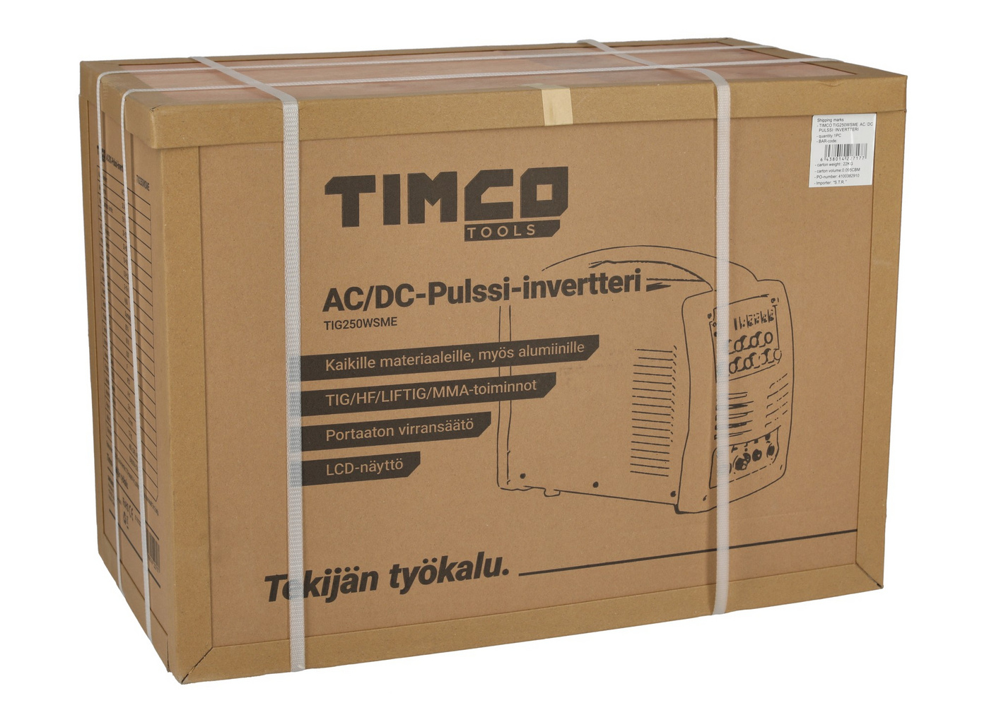 Timco AC/DC Pulse inverter TIG250WSME er en ny AC/DC-pulsinverter som er et lett, bærbart og svært kompakt TIG-sveiseapparat. Den er egnet for lett industriell produksjon, vedlikehold og reparasjon, landbruk og bilindustrien. TIG250WSME er designet for TIG-sveising av høy kvalitet. Med dette TIG-sveiseapparatet kan du sveise nesten alle typer metaller, f.eks. stål, rustfritt stål, krom, titan og aluminium! Når forholdene ikke ligger til rette for TIG-sveising, kan du alltid bytte til pinnesveisekabler og utføre arbeidet med pinnesveising.