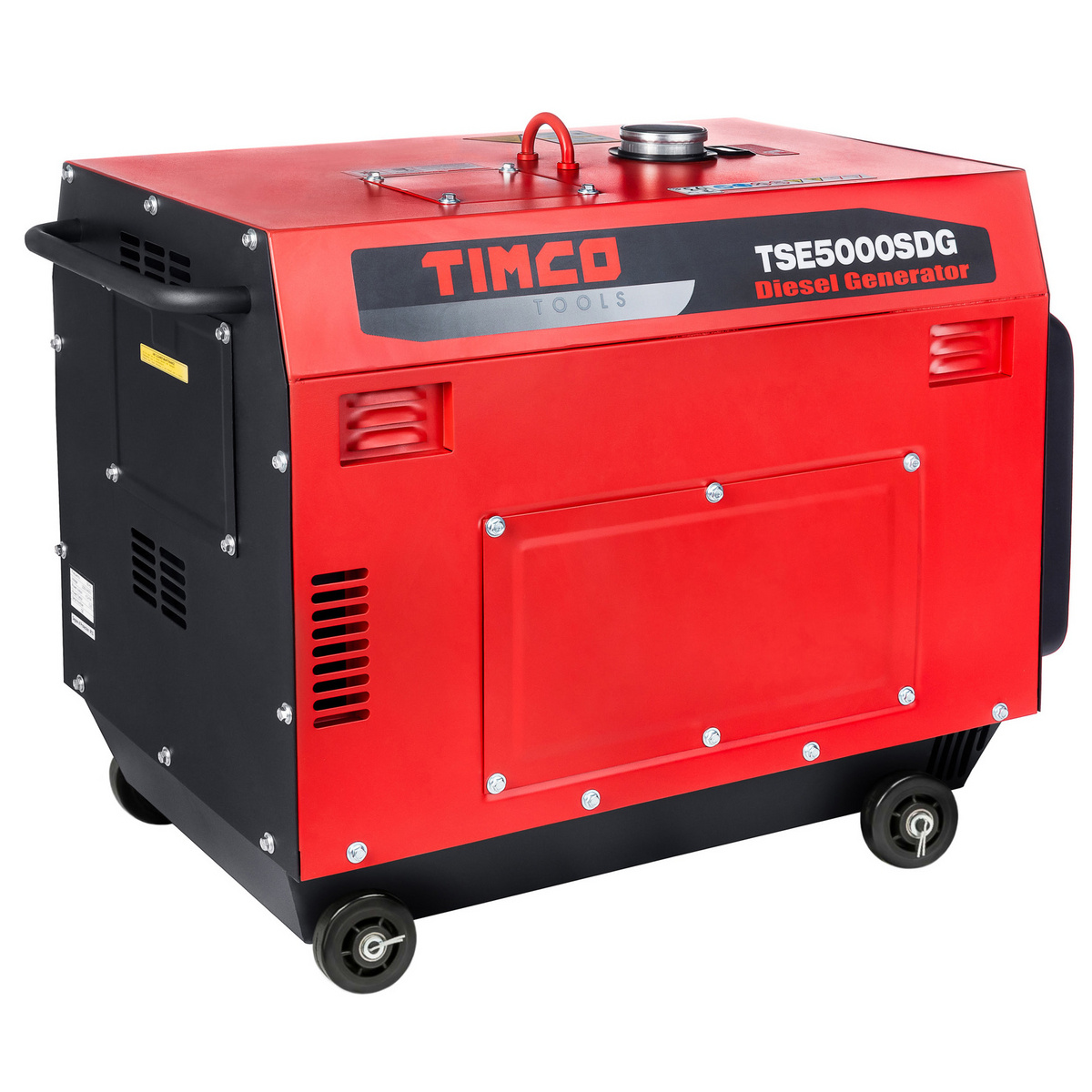 Timco dieselgenerator TSE5000SDG 400 V er en populær trefaset generator for sommerhytter og byggeplasser på grunn av sin stille drift (støynivå kun 71 dB) og lave forbruk.