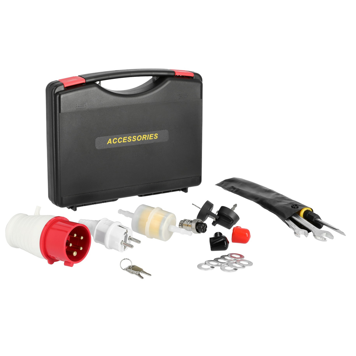 Aggregatet er pakket inn i et lyddempende kabinett, og det er en lyddemper i den ene enden. Drivstofftanken rommer 14 liter diesel, slik at denne generatoren kan gå hele natten.