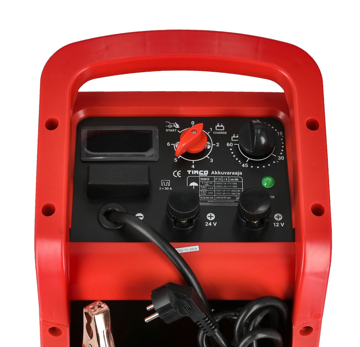 Timco nødstarter / batterilader 12/24V 480A<br /><br />For lading og hjelpestart av bil- og lastebilbatterier.<br /><br /><ul><li>12 V / 24 V batterier</li><li>Hjelpestart: 480 A</li><li>Maks. ladestrom: 100 A</li><li>Ladestrom: 12 V / 60 A</li><li>Ladestrom: 24 V / 70 A</li><li>Utstyrt med hjul</li><li>Solide monteringsbraketter</li><li>Produktstørrelse: 63 x 36 x 33 cm</li><li>Pakkestørrelse: 66 x 36,5 x 32,5 cm</li><li>Produktvekt: 22 kg</li><li>Pakkevekt: 26 kg</li></ul>