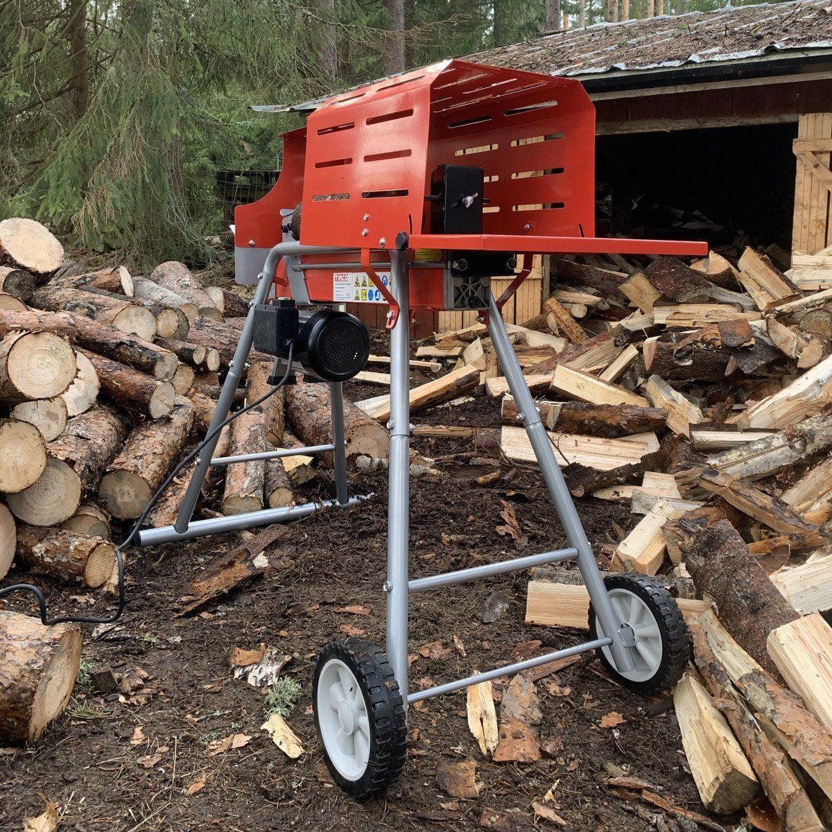 Timco vedkløyver med bein 6T 52 cm er en elektrisk motordrevet vedkløyver. Maksimal lengde på veden som kan kløyves er 52 cm og maksimal klemkraft er 6 t. Vedkløyveren leveres med et praktisk stativ som gjør arbeidet enklere. Stativet er utstyrt med hjul som gjør det lett å flytte maskinen.