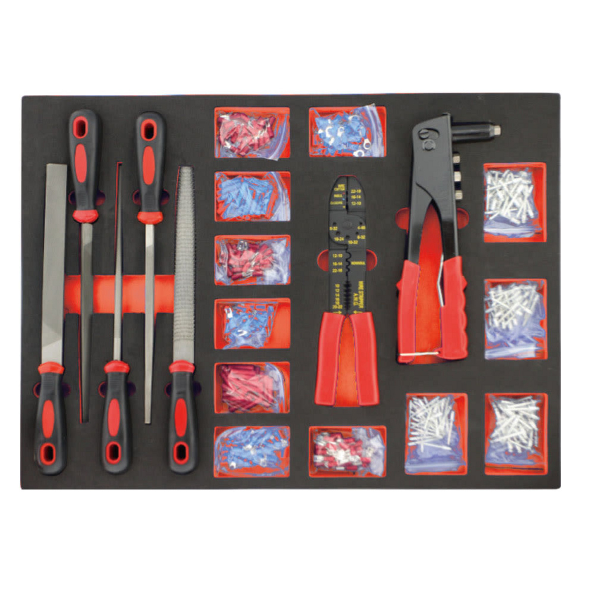 Timco verktøyvogn med verktøy Elite 14 skuffer 489 deler er en solid verktøyvogn designet for profesjonell bruk. Verktøyvognen inneholder et omfattende utvalg av 489 holdbare og moderne verktøy, hvor hvert enkelt har sin egen plass i skumputer (FOAM). Det er glattløpende hjul under verktøyvognen, som gjør det lett og enkelt å flytte vognen. At to av hjulene på verktøyvognen er faste og to er vippehjul gjør den enklere å manøvrere. To av hjulene kan låses, slik at verktøyvognen også står trygt på plass.