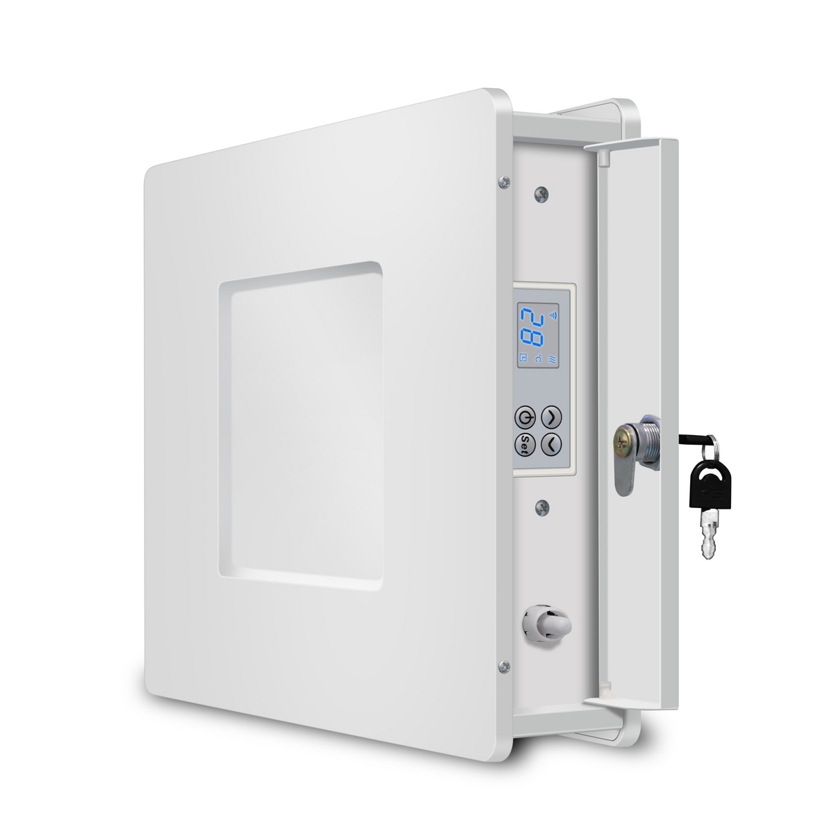 Varmeren er enkel Ƅ installere i hundens kennel og har et digitalt display som lar deg justere temperaturen kontinuerlig. En termostat sikrer at temperaturen holdes konstant pƄ innstilt nivƄ.